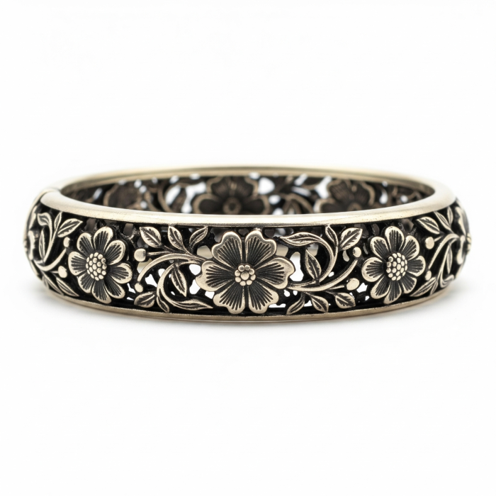 - Antique Finish Floral Bangle